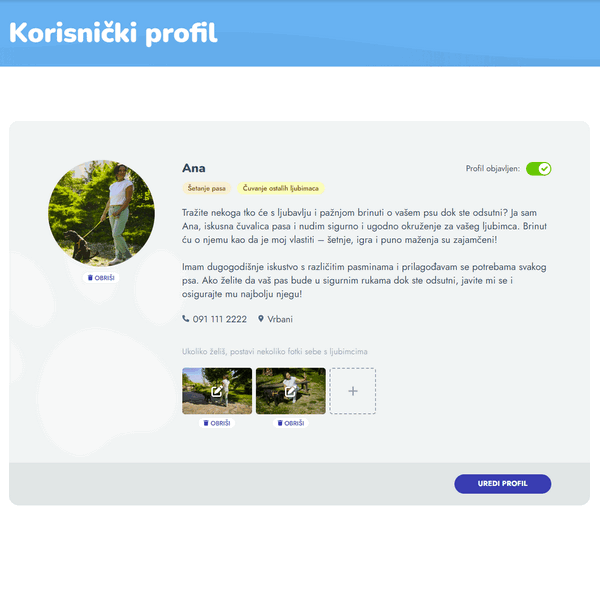 Ovdje možete čitati najnovije vijesti iz svijeta ljubimaca, saznati sve o udomljavanju ljubimaca, u nekoliko klikova pronaći čuvalicu ili šetača za svoje životinje ili, ako se bavite šetanjem / čuvanjem kućnih ljubimaca, prema našem skromnom mišljenju, izabrati najbolju opciju – napraviti korisnički račun i oglasiti svoje usluge na našoj platformi!