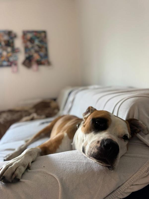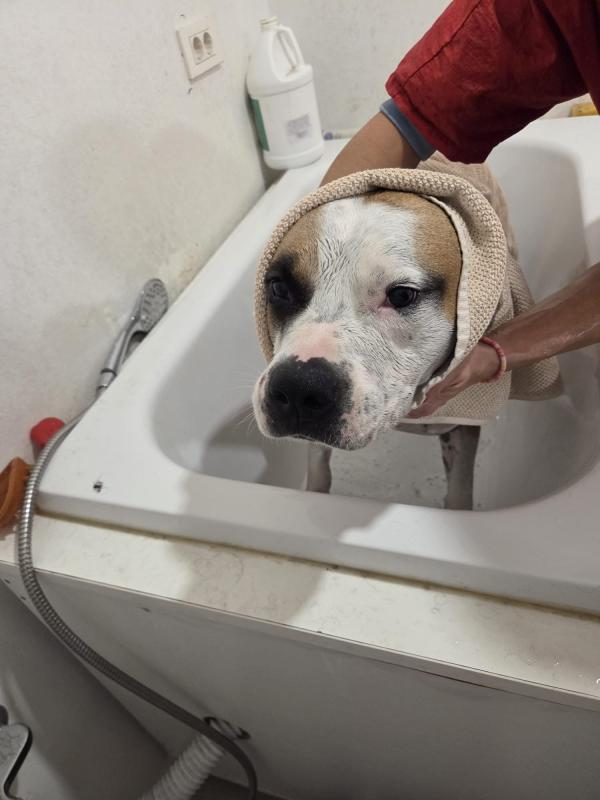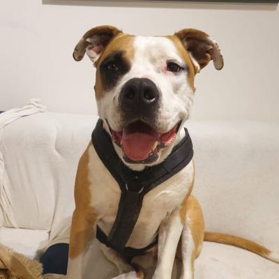 MužjakOdrasli pas (~4 g.)Veličina: velika (32 kg)U tipu: Bulasti (pit, staford...)Kratka dlaka