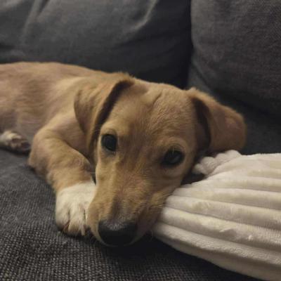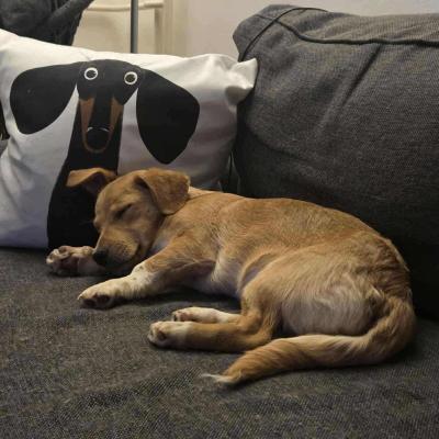 Sprout nam je stigao iz skloništa te se lijepo smjestio kod čuvalice. Ima oko 5mj i trenutno ima 5kg. Slaže se s drugim psima. Tipičnog je ponašanja za štence.