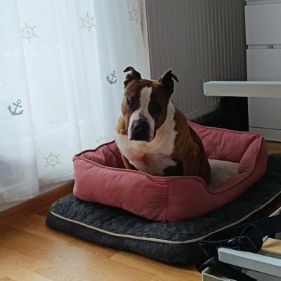 ŽenkaOdrasli pas (~8 g.)Veličina: velika (30 kg)U tipu: Bulasti (pit, staford...)Kratka dlaka